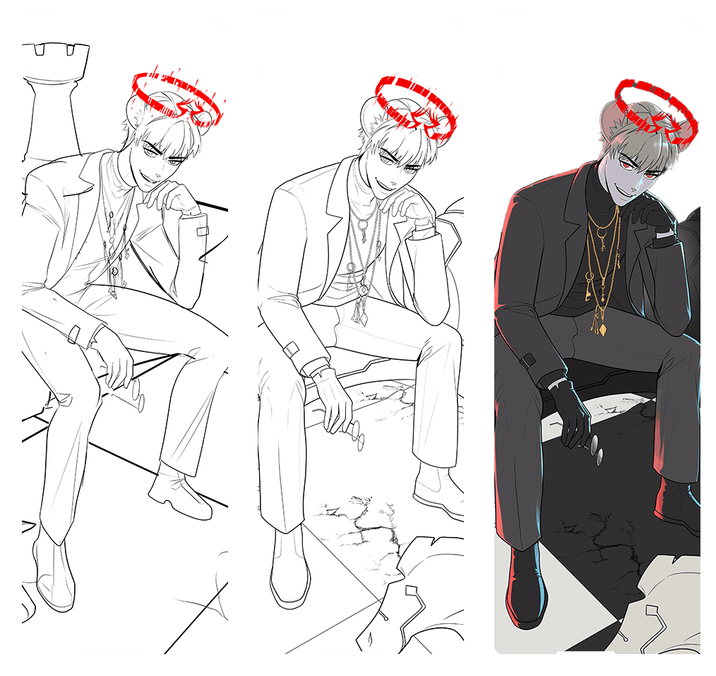 His charm is his weapon: a disarming smile, a beautiful companion on his arm, and a glass of top-of-the-shelf neonburn in the other. He is the embodiment of hedonism and proof that self-interest, when executed with skill, can elevate you to heights most only dream of. His suit hangs nonchalantly, worn as a formality rather than a statement, signalling a sense of refinement he doesn’t believe necessary. Sam maintains a complex push-and-pull relationship with Lira; though outwardly self-serving, his red eyes occasionally soften for her, hinting at a skewed attachment no one else sees.