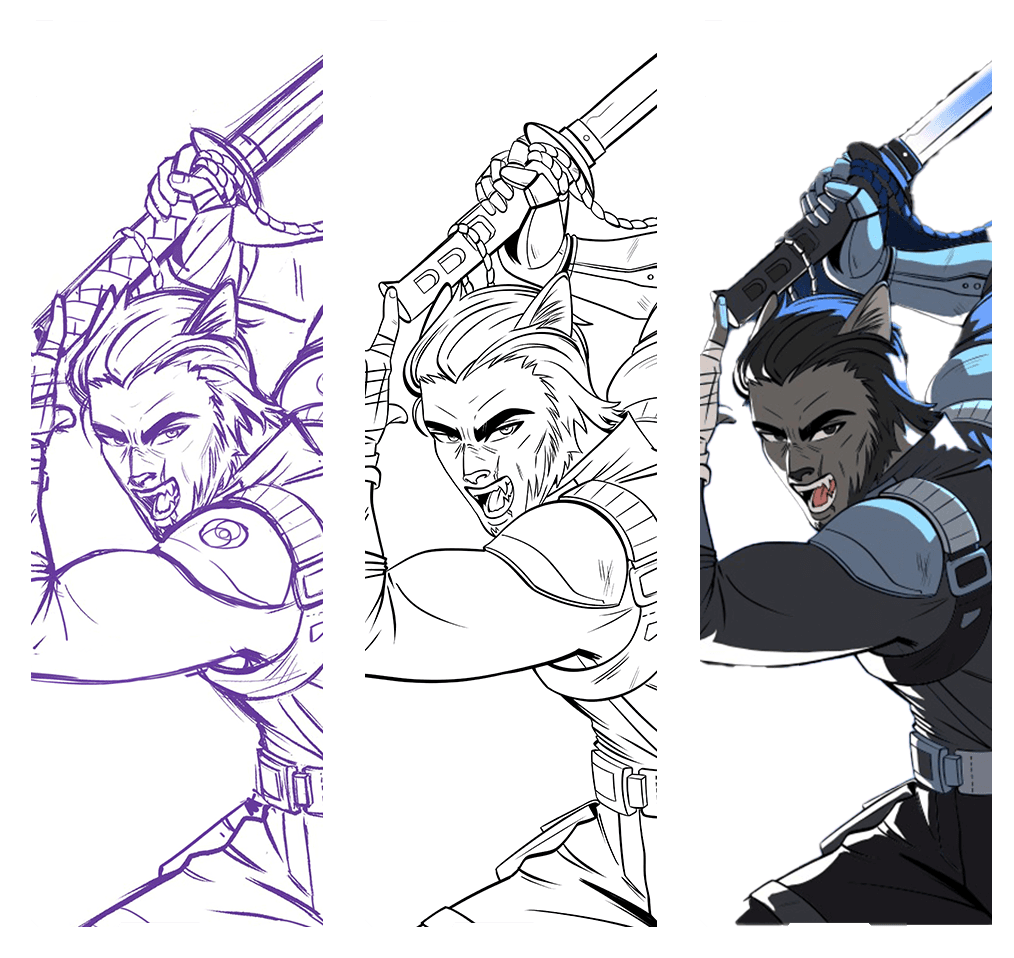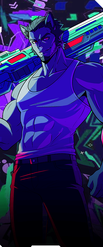 Kael’s design reflects a life shaped by survival, not choice. His heavy build is the result of years of physical labor, work that began far too early. As an orphan on the streets, he survived by taking whatever jobs kept him fed, from hauling crates through the back rooms of neonburn bars to running protection in places no one else wanted to stand.
